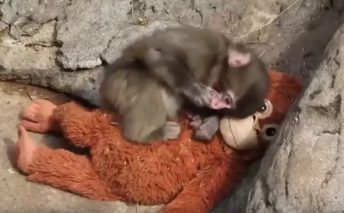 Mała małpka tuli pluszaka jak mamę. Internet oszalał na jej punkcie!