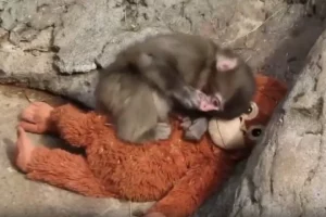 Mała małpka tuli pluszaka jak mamę. Internet oszalał na jej punkcie!
