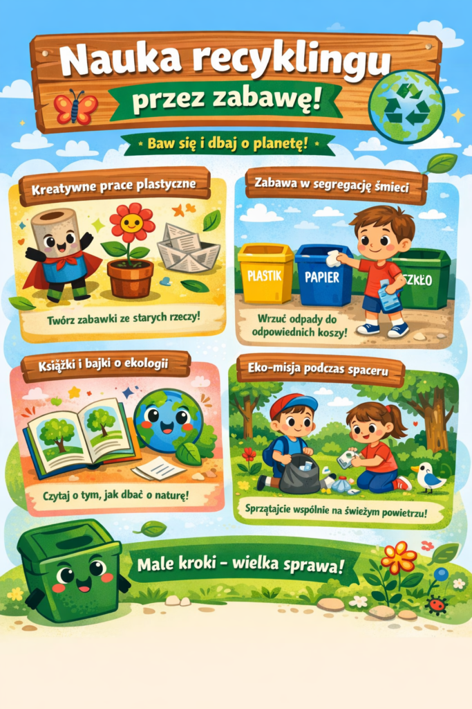 18 marca obchodzimy Światowy Dzień Recyklingu. To dobry moment, żeby zatrzymać się na chwilę i porozmawiać z dziećmi o tym, dlaczego warto dbać o naszą planetę. Segregowanie śmieci, ograniczanie odpadów czy ponowne wykorzystywanie różnych rzeczy to nawyki, których najlepiej uczyć już od najmłodszych lat. Jak zrobić to w prosty i ciekawy sposób? Podpowiadamy.