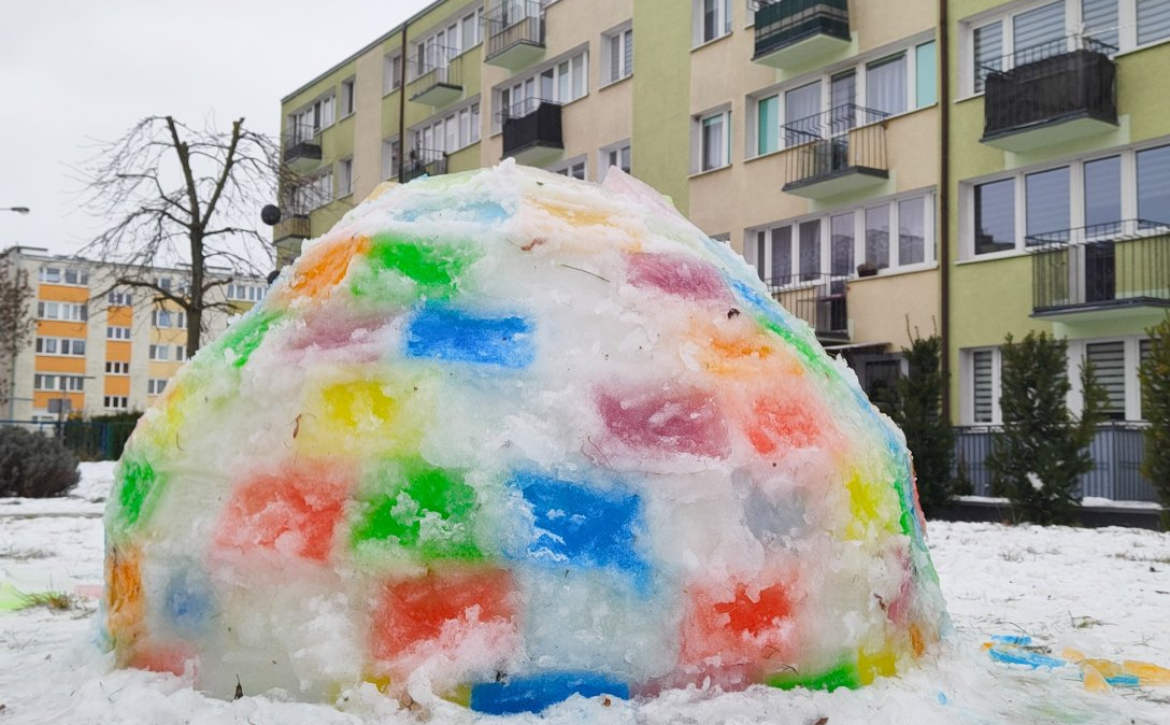 Zbudowali kolorowe igloo z dziećmi. Chwilę później na osiedlu pojawiła się straż miejska